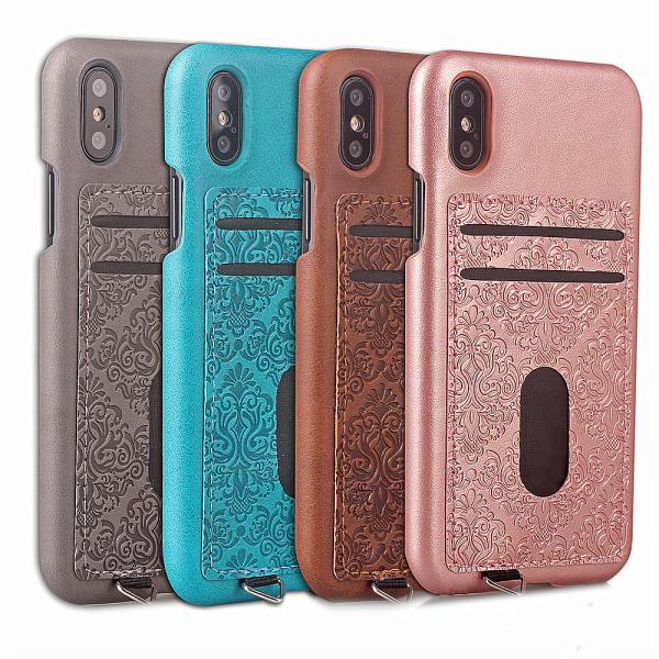 ID Credit Card Slot Embossed Leather Back Phone Case For Iphone X,For iPhone X back case cover with card holders Images |